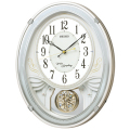 セイコー SEIKO メロディー電波時計 ウェーブシンフォニー (WaveSymphony) AM258W 壁掛け時計は、毎正時を電子音メロディで知らせてくれます 新居・開店祝いにも喜ばれるアミューズ時計 悠々と揺れる振り子が優美な時をお届けするトケイです 毎正時に流れるメロディを3つのジャンルからセレクトできます カントリー(クリスタルベル音) ・赤い河の谷間 ・故郷の人々(スワニー河) ・懐かしきケンタッキーの我が家 ・エンターティナー ・夢路より(夢見る人) ・サリーガーデン さわやかなクラシック(ストロング音) ・春(四季) ・カノン ・アイネ・クライネ・ナハトムジーク ・交響曲第6番 田園 ・ペール・ギュントより「朝」 ・乾杯の歌 クリスマス(チェレスタ音) ・ひいらぎ飾ろう ・もみの木 ・ウィー・ウィッシュ・ユー・ア・メリー・クリスマス ・もろびとこぞりて ・きよしこの夜 ・ジングルベル メロディーは正時ごとに切り替わります。 曲順の変更及び時刻ごとにメロディを固定することは出来ません お部屋が暗くなるとメロディを鳴らないようにする光センサー自動鳴止め機能付きですので、明るいときは楽しいですが、お部屋を暗くしてお休みするときには静かですよ 音量調節もついていますので、お好みの音量に合わせていただけます また1秒刻みのステップ秒針のトケイですが、部屋が暗くなるとセンサーが反応して秒針だけを止める「おやすみ秒針」を採用していますので秒針のコチコチ音がなくなり、就寝時に静かでおすすです 電波時計ですので電波を受信して自動で時刻を合わせてくれます 飾り振り子つき プラスチック枠(白パール塗装) 前面:ガラス ■電波機能:日本全国対応 ■アルカリ単三乾電池×4個 ■1秒刻みのステップ秒針 ■縦415mm×横325mm×厚み78mm×重さ2.0Kg ■電波受信機能OFF付き ■裏面名入れスペース(タテ20×ヨコ60mm 黒色) ■メーカーの正規国内保証書付き(1年間保証) |