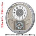セイコー SEIKO メロディー 壁掛け時計 AM401S クオーツ時計 上品なシルバーのアミューズ時計です チャイム音と全18曲のメロディを3グループから選べます クループA チャイム ・ウエストミンスター・チャイム グループB クラシック ・春(「四季」) ・カノン ・アイネ・クライネ・ナハトムジーク ・交響曲第6番 田園 ・ペール・ギュントより「朝」 ・乾杯の歌 ・アメイジング・グレイス ・ジュピター(「惑星」) ・花のワルツ(「くるみ割り人形」) ・愛の挨拶 ・プロムナード(「展覧会の絵」) ・あし笛の踊り(「くるみ割り人形」) グループC クリスマス ・ひいらぎ飾ろう ・もみの木 ・ウィー・ウィッシュ・ユー・ア・メリー・クリスマス ・もろびとこぞりて ・きよしこの夜 ジングルベル メロディは正時ごとに切り替わります 曲順の変更および時刻ごとにメロディを固定することはできません ターコイズブルーがアクセントの回転飾り付き ・正時チャイム・メロディ(3ジャンルから1ジャンルを選択) ・光センサーによる自動鳴止め ・音量調節 ・報時モニター ・回転飾り ・石膏ボード用掛金具つき ・飾り(クリスタルガラス) プラスチック枠(銀色メタリック色塗装) 前面:ガラス ■電池式 ■電池寿命約1年 ■月差±20秒 ■単二乾電池×2個と単三乾電池×3個 ■縦416mm×横385mm×厚み69mm×重さ1.7Kg ■裏面名入れスペース(タテ30×ヨコ90mm黒) ■メーカーの正規国内保証書付き(1年間保証) |