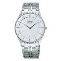 フラットなケースデザインとガラス、細みなベゼルをエレガントに仕上げ薄型を強調した男性用ソーラー腕時計です。(設計値 厚さ4.86mm)
