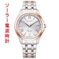 太陽の光を電気に換えて動くあかり発電の機械を採用した、エコ・ドライブ ソーラー 電波時計 シチズン エクシード 紳士用腕時計 CB1084-51A(CITIZEN EXCEED) 白色めっきとピンクゴールドめっきの組み合わせ