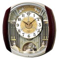 メロディの音色が美しいセイコーからくり時計の電波時計 ウェーブシンフォニー 掛時計 RE564H (SEIKO WaveSymphony) 高級感漂う本格からくり時計。クリスタルのきらめきと落ち着いたカラーリングは、ご自宅のリビングやパブリックスペースなど幅広いシーンにフィットする掛け時計です。 毎正時、オープニング曲とともに、回転飾り横から2筋の花火が上がるようにLEDライトが点滅します。メロディに合わせて、文字板がゆっくりと3方向に分かれます。 中から現れたディスク飾りが時計回りに、それを取り巻く6つの飾りが反時計回りに回転します。 飾りは、上下に動きます。 3つに分かれた文字板もそれぞれ回転します。またLEDライトがメロディに合わせて点滅する光のパフォーマンスも繰り広げられます。 エンディングの曲とともに、文字板が元に戻ります 曲目:オープニング・・・オリジナルメロディ アメイジング・グレイス ジュピター(「惑星」」 花のワルツ 愛の挨拶 プロムナード(「展覧会の絵」) あし笛の踊り(「くるみ割り人形」) エンディング・・・オリジナルメロディ 光センサーによる自動鳴り止め機能付きの壁掛け時計なのでお部屋が暗くなるとメロディを止めるので、就寝時には静かなトケイです さらに1秒刻みのステップ秒針ですが、お部屋が暗くなると秒針のみ動きを止める「おやすみ秒針」の採用で、お休みのときに秒針のコチコチ音がなく静かな眠りをたすけてくれる掛時計です また電池切れ予告機能を備えていますので、電池が切れるころには明るいところでも秒針を止めて電池交換時期を知らせてくれるので、電池の交換時期がわかりやすいです 音量調節機能 一方向回転飾り 濃茶マーブル模様塗装光沢仕上げのプラスチック枠 前面:ガラス ■電波機能:日本全国対応 ■電池式 ■アルカリ単一乾電池×4個と単三乾電池×2個 ■1秒刻みのステップ秒針 ■縦480mm×横453mm×厚み116mm×重さ4.4kg ■電波受信機能OFF付き ■メーカーの正規国内保証書付き(1年間保証) |