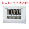 セイコー SEIKO 壁掛け時計 SQ435W お好きな時間をチャイムやメロディーで知らせてくれるので、会社や工場、学校、学習塾などの時間管理に大変便利なプログラム掛時計 32チャンネル設定できるので、多様なタイムスケジュールを管理することができます さらに温度、湿度も表示しますので、お部屋のコンディションがひと目でわかり、オフィスや学校の室内環境管理にも役立ちます。 また曜日ごとに設定を変えることができますので、学習塾・スポーツクラブ・カルチャーセンターなど曜日によってスケジュールが違っても、正確な管理ができます チャイム&メロディ(ハイファイ音源) チャイム ・ウエストミンスター・チャイム メロディ ・マイスターシンガー ・グリーンスリープス ・美しき青きドナウ ・ブラームスの「ワルツ第15番」 ・時の踊り 正時/プログラム/オフの切り替え式 ・暗くなると鳴らさなくする光センサーによる自動鳴り止めつき(毎正時モードのみ) ・音量調節機能 ・温湿度表示(温度測定範囲:0℃~40℃ 測定精度:±2℃ 湿度測定範囲:25%RH~85%RH 測定精度:±8%(25℃)) ・12時間制/24時間制切替式 ・六曜表示付 ・電池切れ予告機能(液晶) スタンドを利用すると置き時計にもなる掛置き兼用時計です デジタル文字高(最大)56mm 白色パール塗装のプラスチック枠 前面:ガラス ■電波機能:日本全国対応 ■アルカリ単三乾電池×3個 ※モニター用電池として、マンガン電池を同梱しています。 ※付属の電池は、動作を確認するためのモニター用電池(お試し用電池)です。お買い上げ後、仕様の年数に満たないうちに電池寿命が切れることがあります ■縦186mm×横264mm×厚み39mm(置いた状態:180×264×81) ■電波受信機能OFF付き / 石膏ボード用掛け金具付き ■裏面名入れスペース(タテ20×ヨコ90mm 電池ブタ) ■メーカーの正規国内保証書付き(1年間保証) |